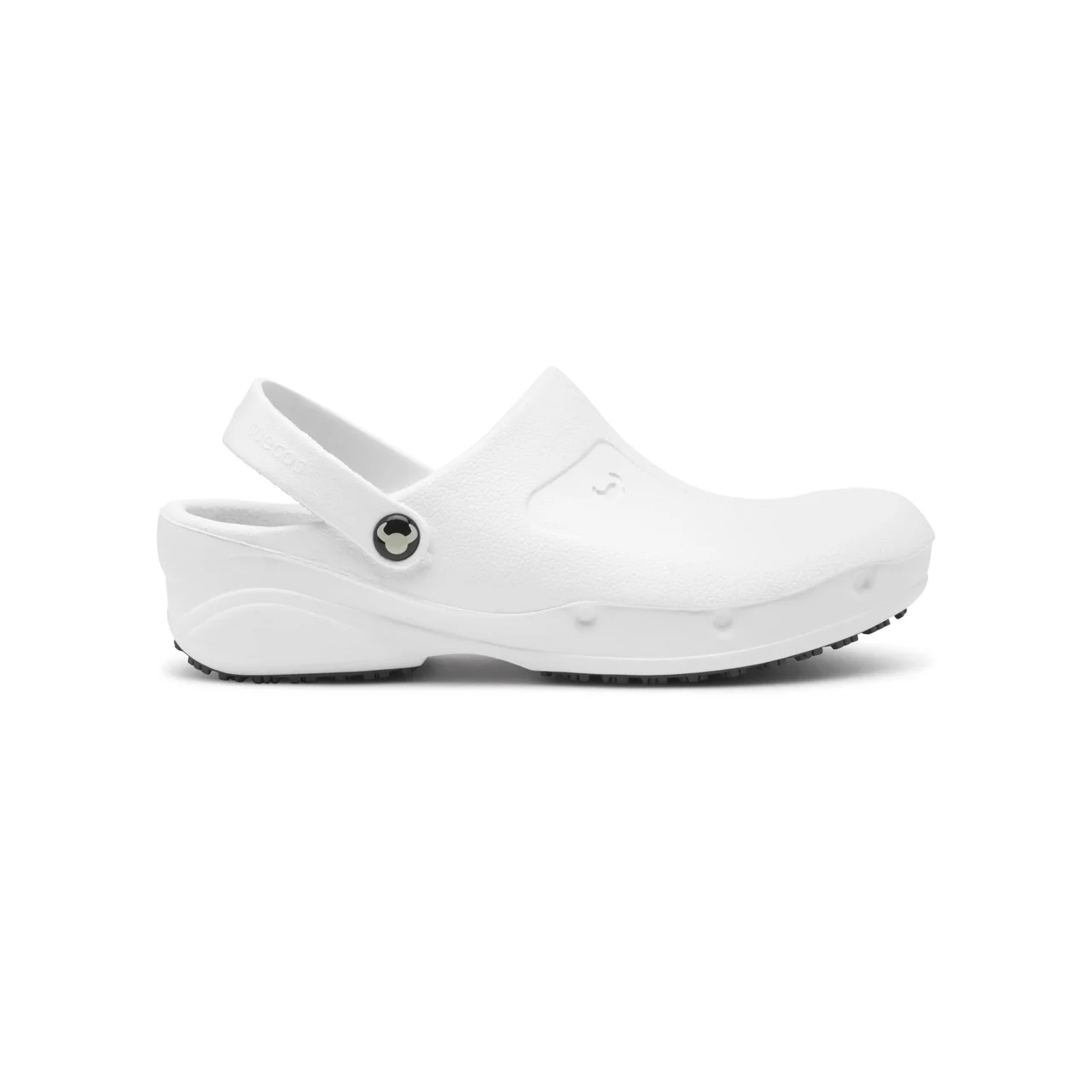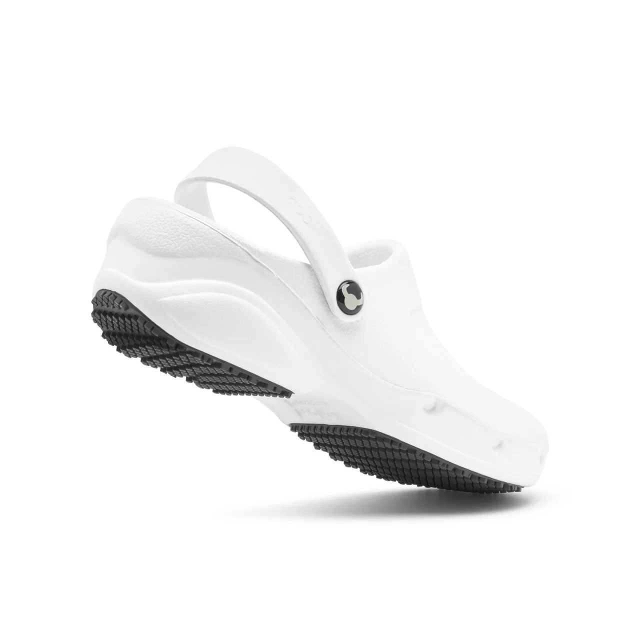 Η στρογγυλεμένη γραμμή στην καμάρα και η εργονομικά ανυψωμένη φτέρνα προσφέρουν άψογη εφαρμογή στο πόδι, χωρίς πιέσεις ή ερεθισμούς. Το σαμπό “αγκαλιάζει” το πόδι, εξασφαλίζοντας άνεση χωρίς τριβές, ενώ ο σχεδιασμός του επιτρέπει εύκολο φόρεμα και αφαίρεση, ακόμα και σε γρήγορες αλλαγές βάρδιας.